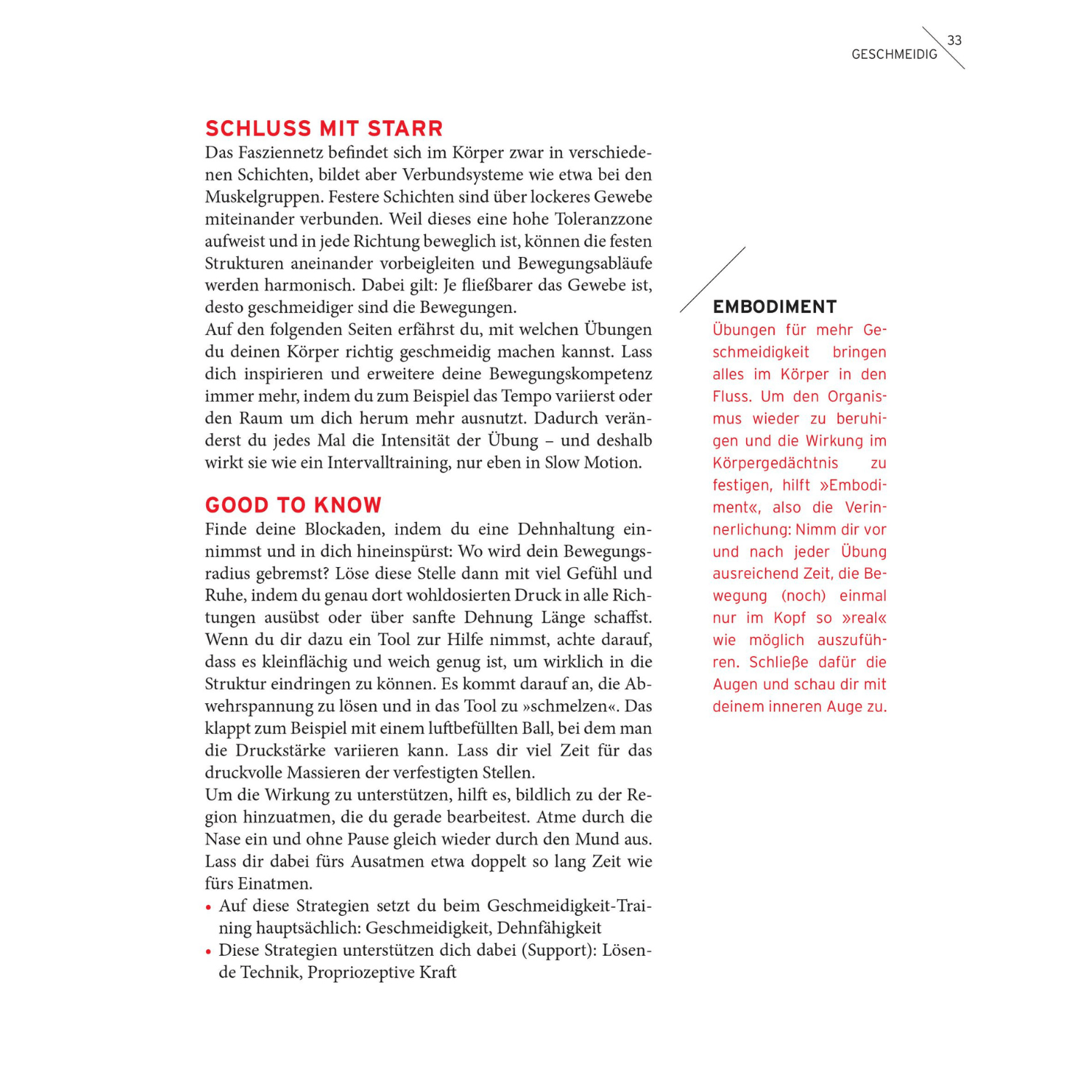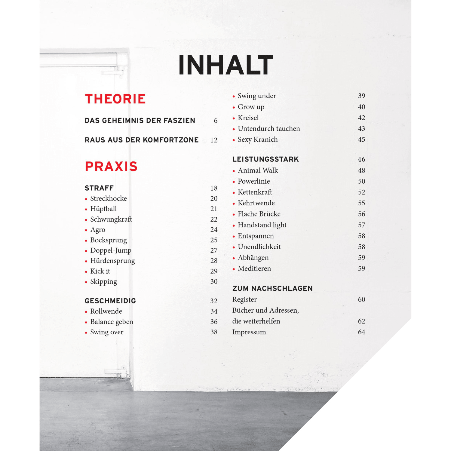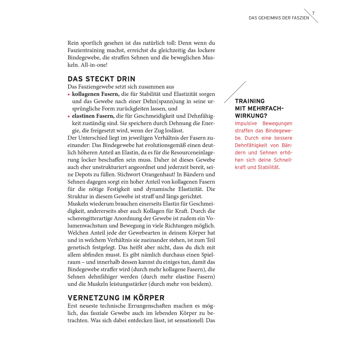 Fascias ? Fascinant ! La combinaison de tissu conjonctif est en partie responsable de notre qualité de vie, maintient le corps et l'esprit en bonne santé et rend souple ! Un entraînement ciblé peut soulager les douleurs, prévenir les blessures et fait que chacun se sent en forme et dynamique. Il soutient la liberté personnelle (de mouvement) – et avec un peu de réglage fin grâce à trois entraînements efficaces, chacun en tire le maximum !