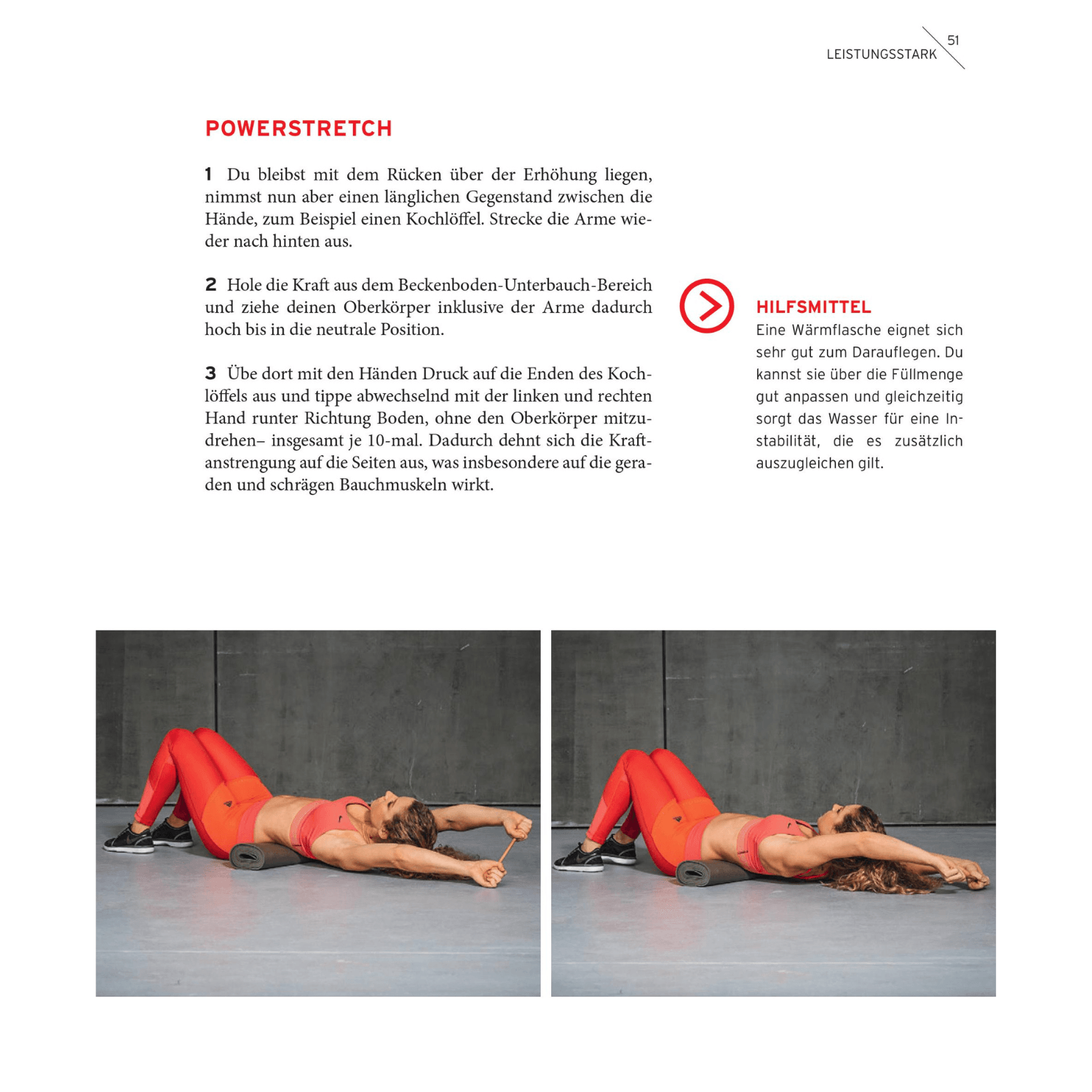 L'entraînement se fait avec le poids du corps ; des accessoires comme le ballon & Co. peuvent également être utilisés. Et le meilleur : Chaque exercice est aussi disponible en vidéo en streaming gratuit – le code d'accès se trouve dans le livre.