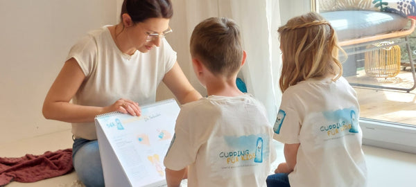 Auch die Kleinsten freuen sich über Momente der Entspannung und Zuwendung mit Cupping. Größere Kinder wenden ihre Cups selbst an, um zu massieren und zu relaxen. Die Jüngeren lauschen Geschichten, die durch die sanften, taktilen Reize der Cups zum synästhetischen Erlebnis werden.